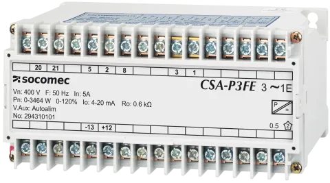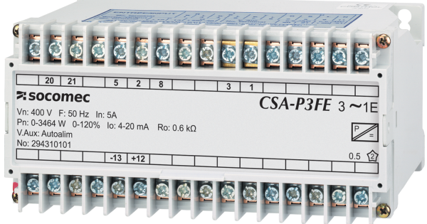 | Opis | Przetwornik CSA-A4 wejście: 400 V, 5 A wyjście: 4-20 mA, 0-10 VDC, zasilanie pomocnicze 230 VAC, 50 Hz Przetwornik konwertuje parametr elektryczny na sygnał DC |